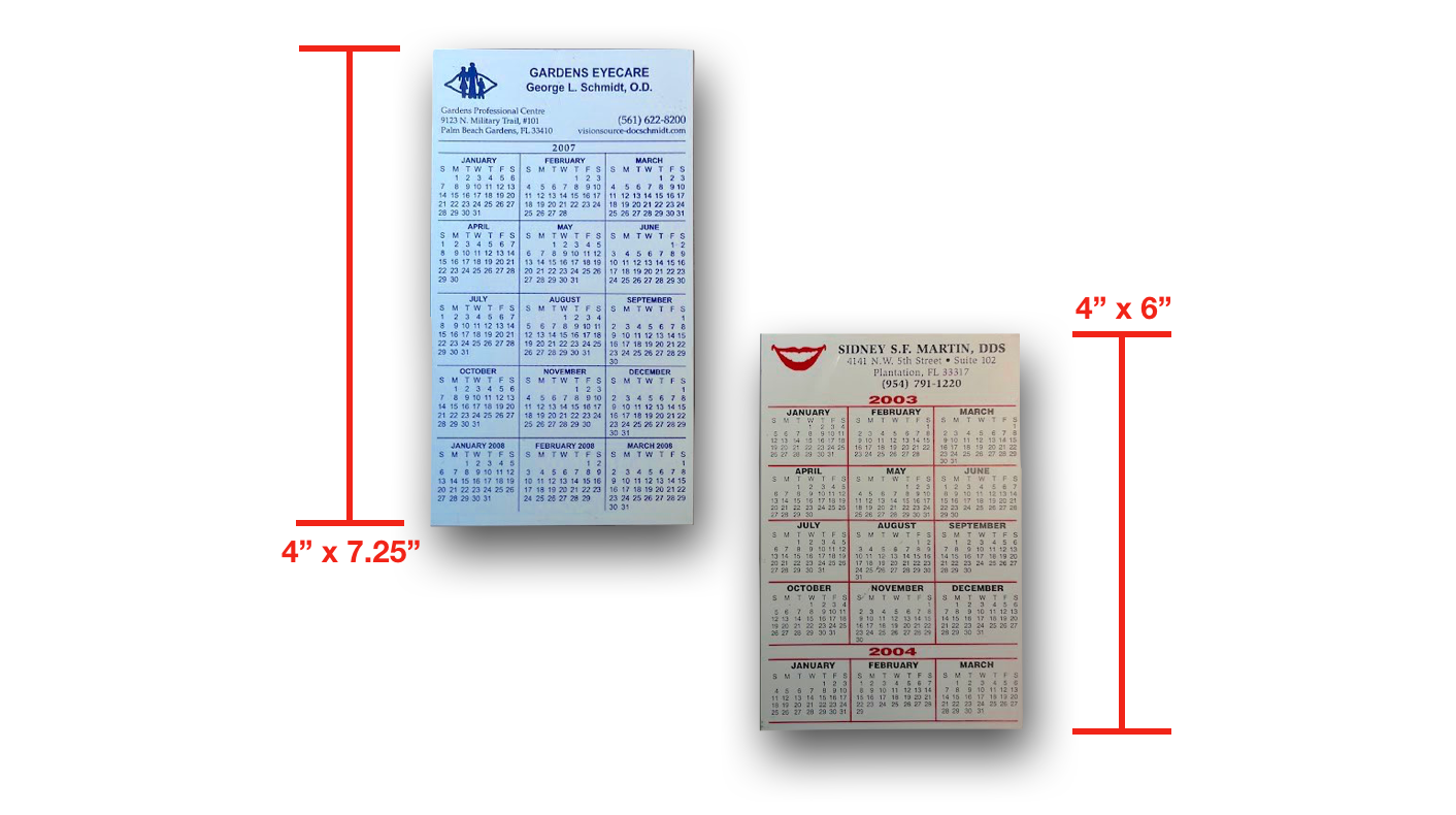 Stay organized with a custom magnetic calendar on your fridge, whiteboard, or filing cabinet. Please note that our standard calendar magnet sizes are 4" x 6" and 4" x 7.25" – if you would like a custom size/shape, give us a call and we will place an order for your die stamp.