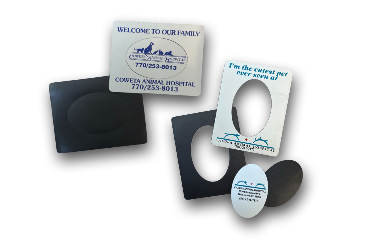Imprinted magnets are an exceptional method of keeping your company name/logo & promotional message presented to your market for long periods of time. Please note that our picture frame magnets are 3.5" x 4.5"– if you would like a custom size/shape, give us a call and we willplace an order for your die stamp.