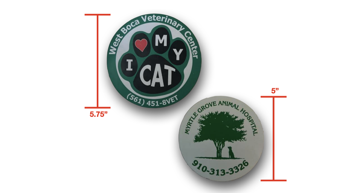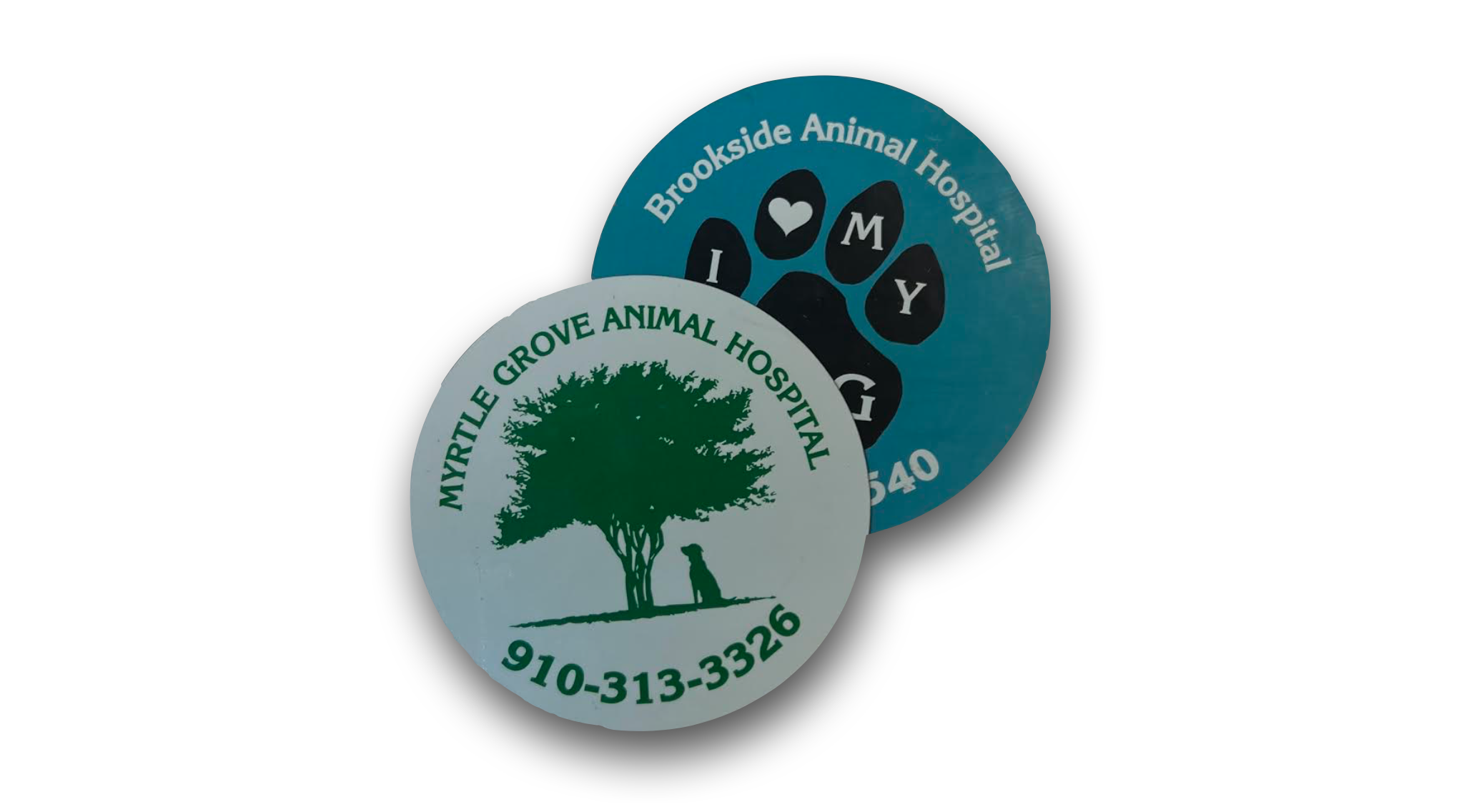 Imprinted magnets are an exceptional method of keeping your company name/logo & promotional message presented to your market for long periods of time. Please note our standard circle magnet sizes are 5 and 5.75 inches in diameter–if you would like a custom size/shape, giveus a call and we will place an order for your die stamp.