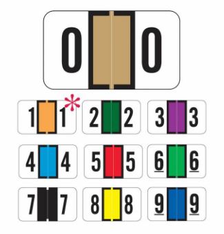 Comes in a tray with a roll of 500 for each number