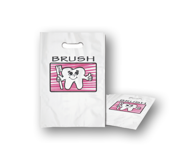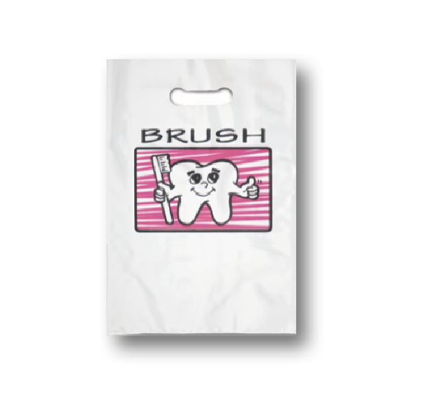 Our Pink Single Tooth & Brush Plastic Bags are a phenomenal way to remind patients of your dentistry practice. These versatile patch handle bags are sturdy and budget-friendly - perfect for take-home dental supplies.If you would like this bag imprinted, please select 1/0 or 1/1 in the "Imprinting" option group and upload an artwork file with the design you would like to appear on the bag. If "None" is selected in this option group, it will come in its stock form as pictured above.