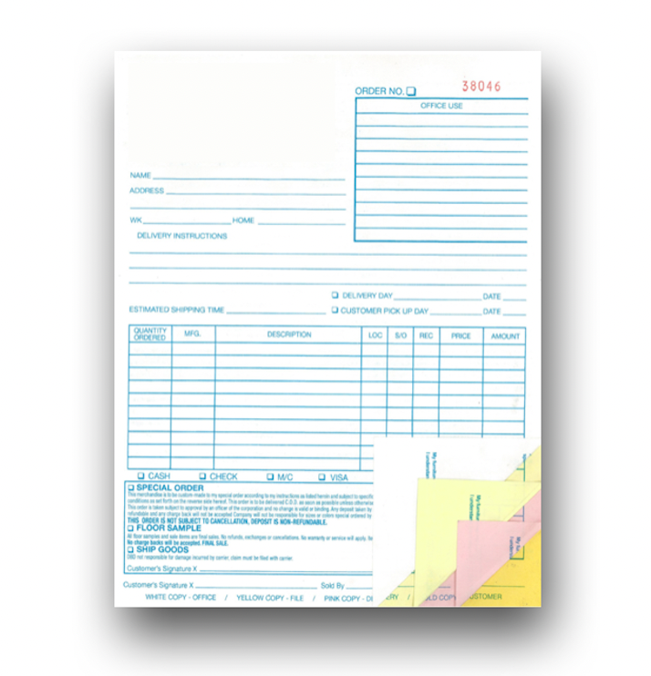 - 4 part (white, yellow, pink, & gold NCR paper)