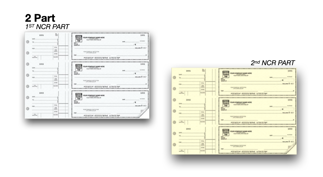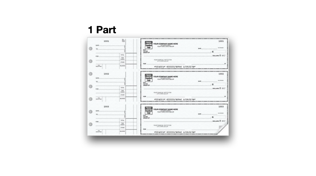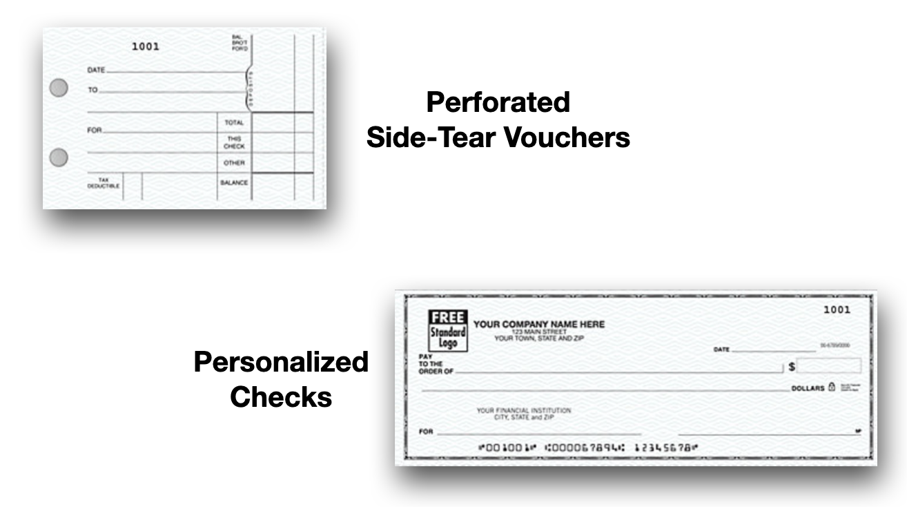 Notable Check Features: - Hole-punched - 1 or 2 part - 3 checks per page - Perforated side-tear vouchers - Personalized