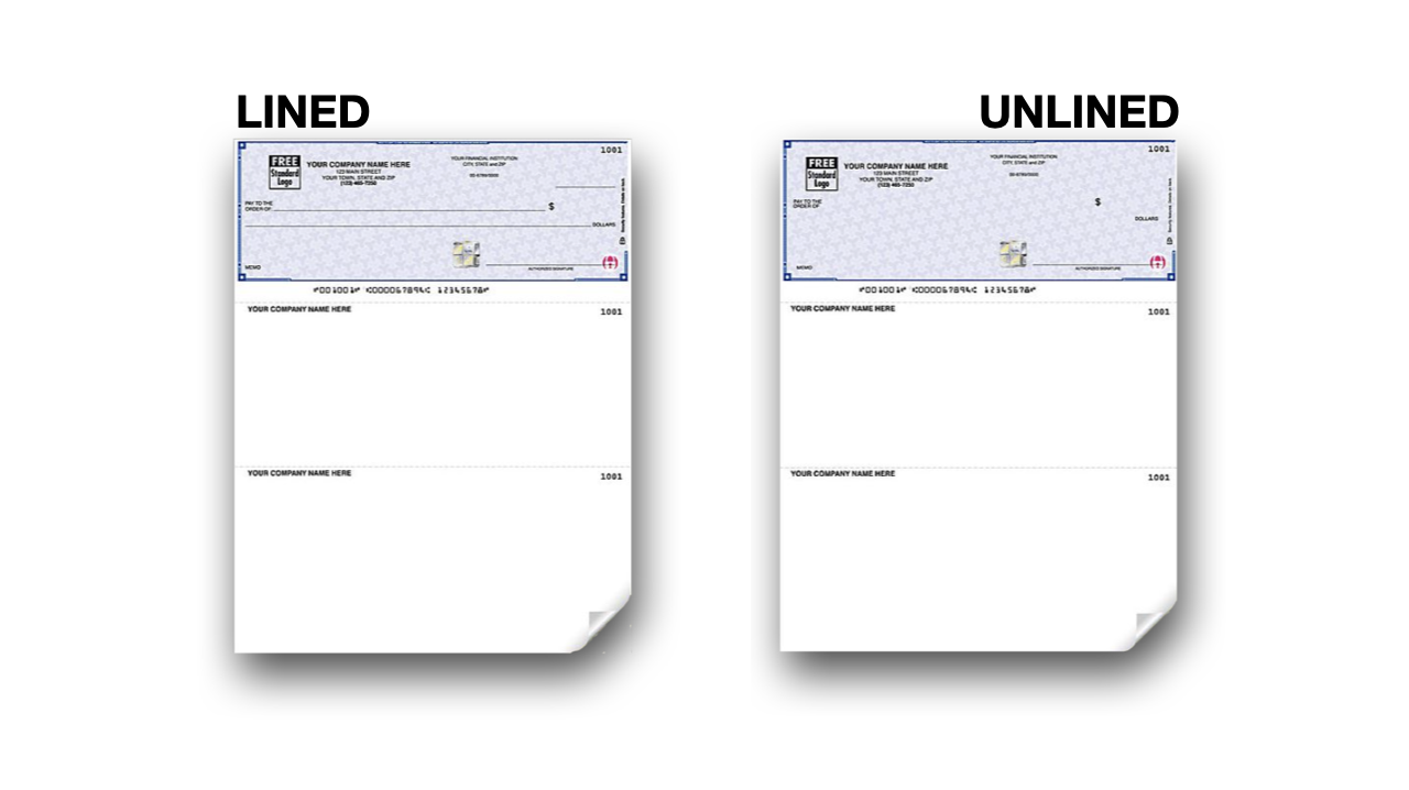 Notable Check Features: - 1 part - 2 tear-out vouchers - Lined or Unlined - Accounting Software Compatibility - Fits all standard laser & inkjet printers - Anti-copy technology - Personalized