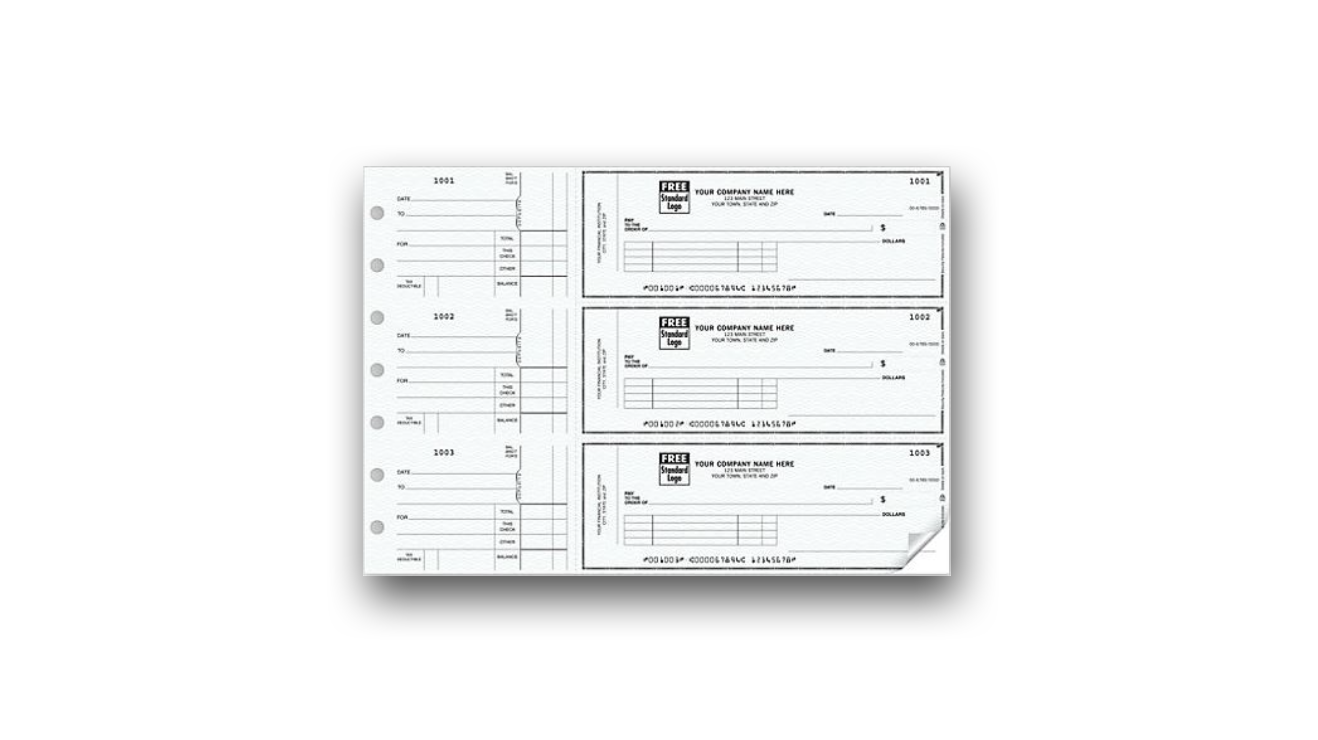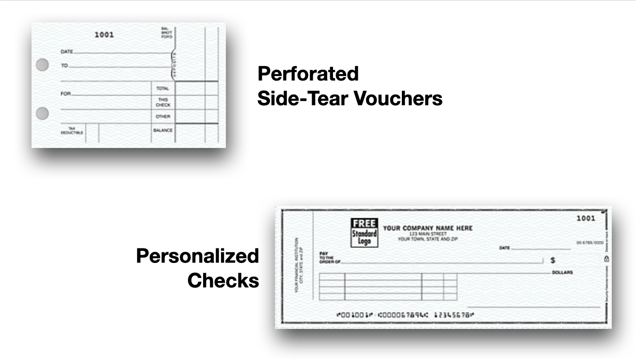 Our Cost Accounting Checks come hole-punched for conveniently securing your checks in any binder and supply you with extra space for adding more details and longer descriptions. These popular 3-to-a-page checks also come equipped with perforated side-tear vouchers that can be detached from your personalized checks – perfect for record-keeping and tracking all your expenses.